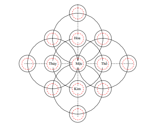 Theo lý sinh như trên hình đã ghi thì MỘC có THỦY là Nguyên, KIM là Kỵ, THỔ là Cừu, HỎA là Tiết. Bây giờ, ta suy xét kế tiếp thì lại thấy MỘC là Nguyên Thần của HỎA, đồng thời MỘC lại là Kỵ Thần của THỔ, là Tiết Thần của THỦY..…