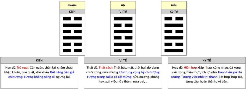 Kiển của ngày hôm nay là Kiển biến Ký Tế, Ký Tế là sự hiện hợp, việc hoàn thành nhờ có Kiển (kiên trì nhẫn nại).