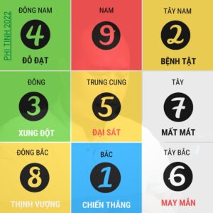 Mỗi năm vị trí 9 ngôi sao sẽ thay đổi, vận khí mỗi năm mỗi khác. Tham khảo sơ đồ Phi Tinh 2022 để biết được đâu là vị trí tốt trong nhà, nhờ đó có cách sắp xếp, bố trí phong thủy sao cho hợp lý, giúp tăng cường vận thế.