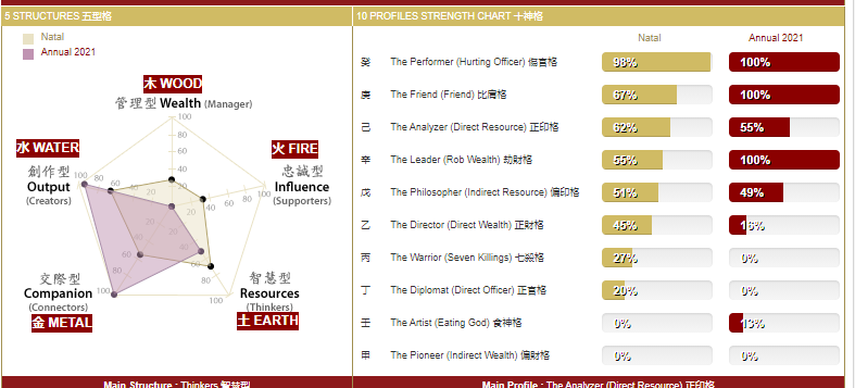Kim sẽ là Quan sát (Chính quan – Thiên quan) biểu thị cho “Chức danh, địa vị, danh dự, Chồng, con cái, nghề nghiệp tư pháp, hung sát”, năm 2017 là Đinh Dậu (Hoả – Kim)